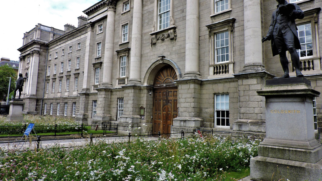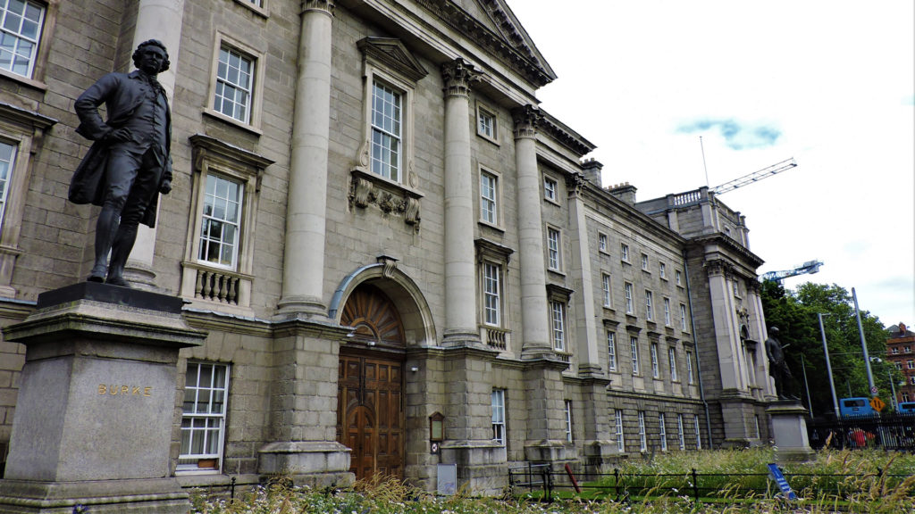 The stunning Long Room library on campus houses one of Dublin’s most visited Tourist Attractions- the Book of Kells- with a recently updated exhibition to provide a comprehensive guide to the whole history of the book. The book contains the 4 Gospels in Latin, beautifully illustrated on calf skin vellum, as well as summaries & canon tables and is thought to have been written around 800AD.